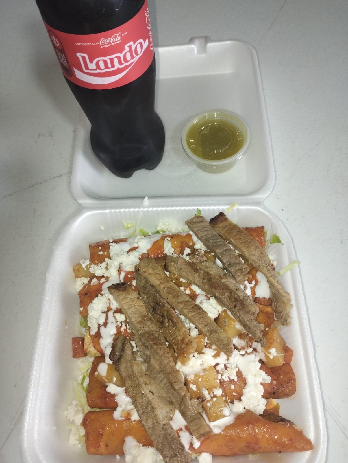 | Enchiladas | Chamarro | Sopa de fideos | Fruta con yogurt | Papaya |
