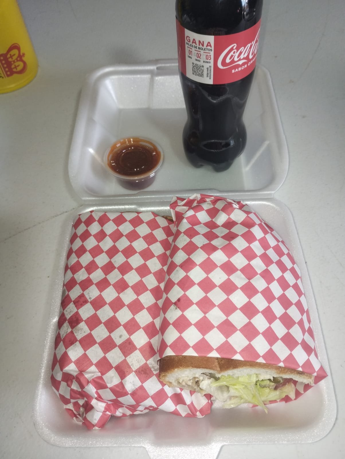 | Baguette | Birria de res | Crema de jalapeño | Flan napolitano | Piña con coco |
