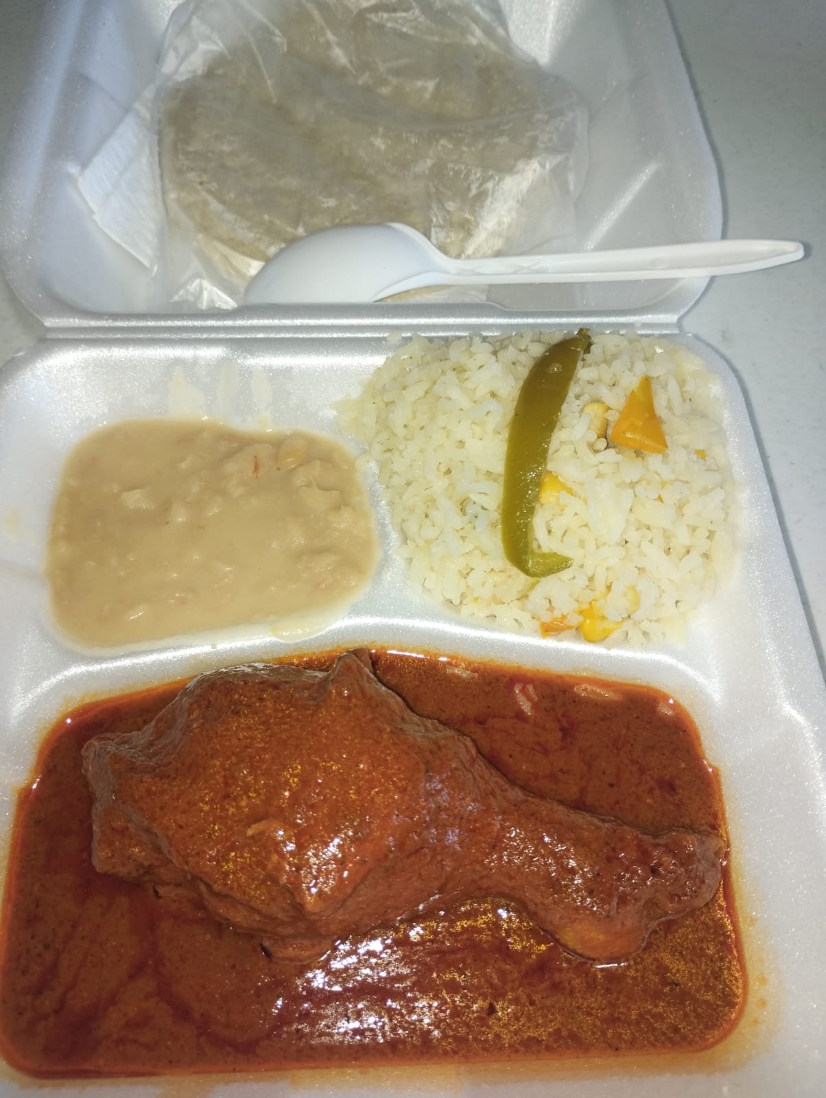 | Bistec a la mexicana | Mole | Arroz blanco | Arroz con leche | Limón con Pepino |