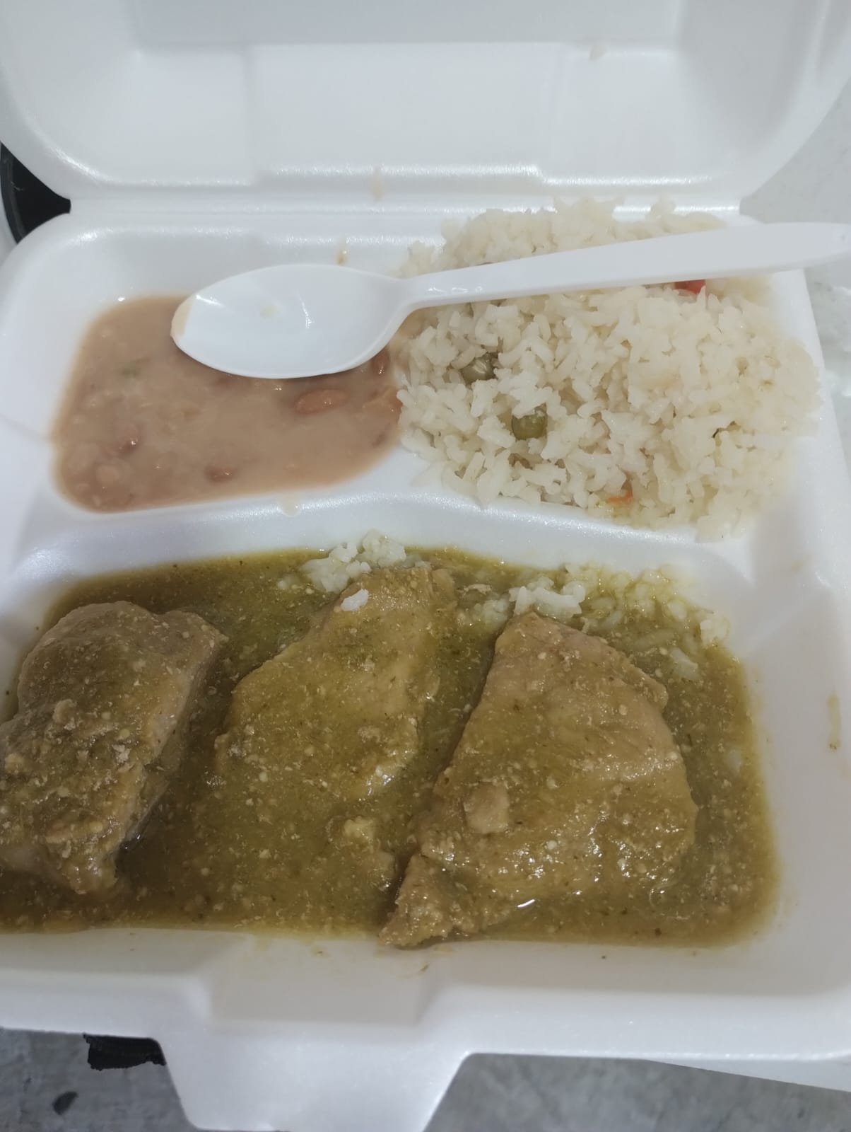 | Costillita de puerco | Hamburguesas | Espagueti verde | Paletas de hielo | Piña |
