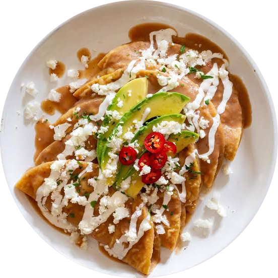 | Tinga de pollo | Fajitas de arrachera | Crema de elote | Crepas | Mango con maracuyá |