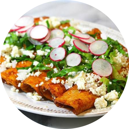 | Flautas de pollo | Gorditas queretanas | Espagueti rojo | Pay de limón | Naranja |